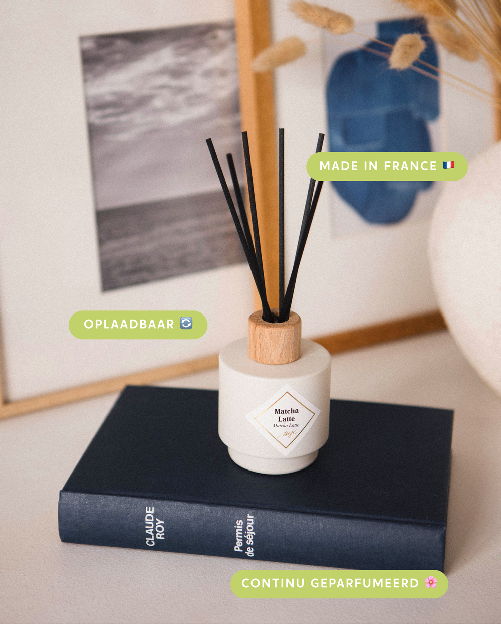 Verfris uw interieur gedurende meer dan vier weken dankzij een verspreiding door capillariteit. Een subtiele harmonie van groene matcha-thee en havermelk voor een echt moment van welzijn en rust.. Gebruik vervolgens uw mooie flesje opnieuw dankzij onze voordelige parfumnavullingen. Dit product is oplaadbaar.